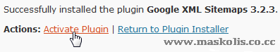 - Setelah proses instalasi plugin selesai, klik Activate Plugin untuk mengaktifkan plugin Google XML Sitemaps.